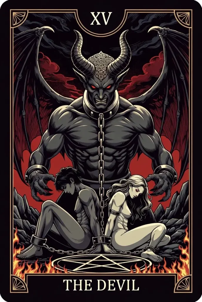 As terrifying as The Devil appears, he is only the embodiment of evil in some translations. The Devil holds the chains that bind you to the material world. Regrets, guilts, pleasure, addictions. When this card appears, it indicates a situation that is not in you favor.