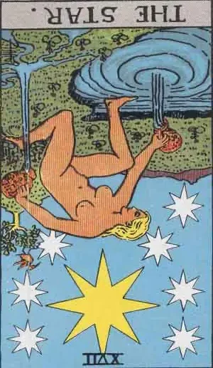 In the Reversed position, you can turn the meaning of The Star upside down and inside out, or it can be perceived as something else. Reversed cards can be read a few different ways. If you want to know the source of the concept of why this card is defined the way it is, check out the article “Reading Reversals” in Chapter 6 of this knowledge base.