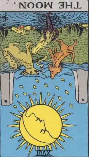 Have you ever shook a “Magic 8 Ball” and got the response “Answer is unclear, please try again later”? That’s one connotation of the Moon reversed. What ever you’ve asked the oracle, was not clear and concise. Alternatively, the variables are too great to properly poise the response. The moon upright is a situation in flux, but this is the flux you’re asking about.