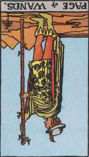 The Page of Wands in the reversed position highlights all the negative characteristics of the page. This would be non-committal, light hearted to a fault, childish avoidance of responsibility, and refusing to acknowledge the cycles they’re stuck in. The message they come with is inevitably to stir the pot, and rarely is ever a positive contribution. They selfishly create drama for their own amusement, and lead you astray to see if you catch onto their game.