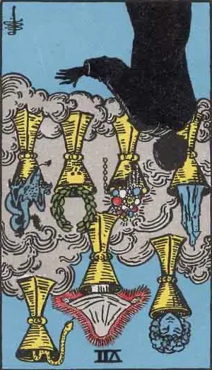In the reversed position the Seven of Cups represents opportunities you’ve missed due to fantasy, or the chaos of confusion taking a critical hit on your end -goal.